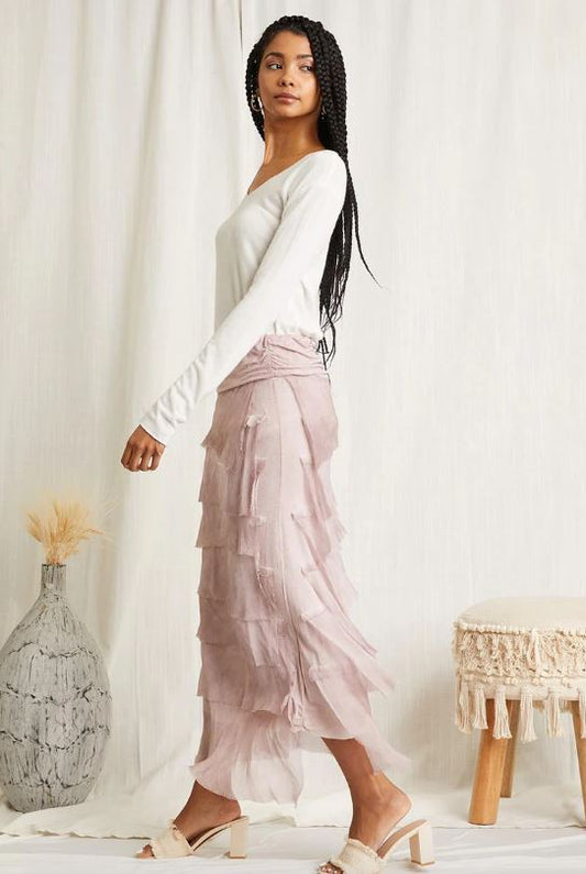 Dotty Mesh Ruffle sleeve Ribbed Knit Top Pink
